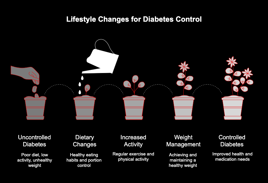 Big lifestyle changes can really help you control diabetes. If you make the changes, you might need your medicine changed before three months go by. What you eat, how much you move, and your weight all connect to the amount of medicine you need. If any of these change, you may have to change your treatment plan too. Using lifestyle changes in your daily life makes a big difference for your health.