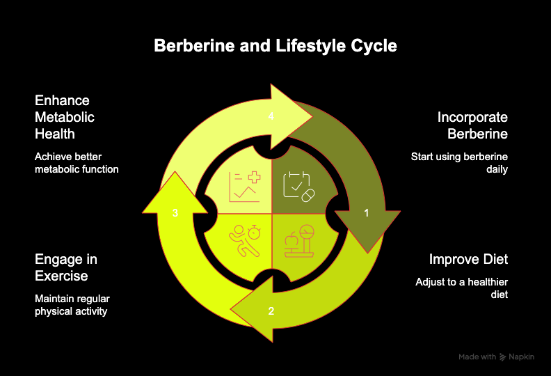 Adding natural supplements like berberine to your daily routine can help your metabolic health. Traditional medications may improve processes by about 50%. However, berberine can give you a 15 to 20% boost when you combine it with healthy habits like eating well and exercising regularly.