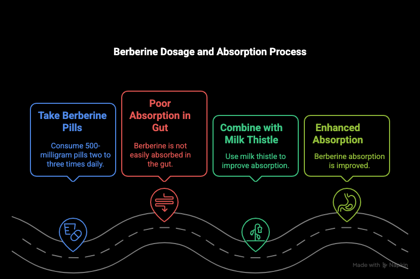 To get the benefits of berberine, you need to take the right amount. Generally, you should take 500-milligram pills two to three times a day. Berberine does not absorb quickly in the gut. Taking it with other supplements, such as milk thistle, can help your body absorb it better.
