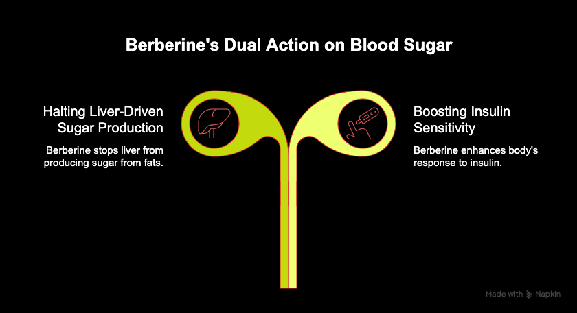 Berberine has a strong impact on blood sugar levels in two key ways. First, it prevents the liver from creating sugar from fats and proteins. Second, it boosts insulin sensitivity. This help improves how muscles take in glucose, which lowers blood sugar levels. It also aids in healthy aging.