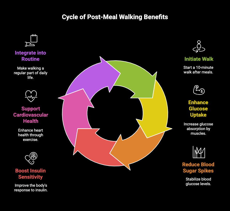 Key Highlights A brief 10-minute walk after meals can significantly lower blood sugar by promoting physical activity and enhancing glucose