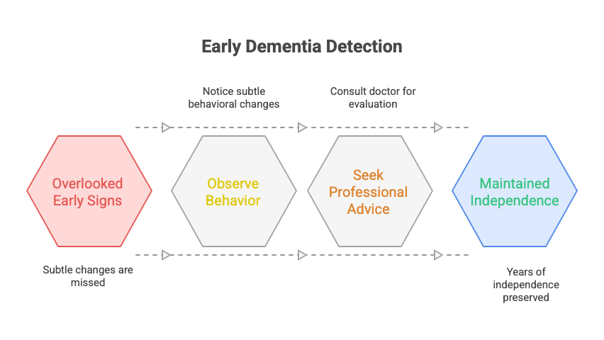 Detecting dementia in its early stages could be crucial for maintaining years of independence for those we care about. Imagine a scenario where your parents, spouse, or grandparents start to exhibit subtle changes in behavior. At first glance, these changes may seem insignificant, and it’s easy to overlook them. However, recognizing these early red flags can make a significant difference.