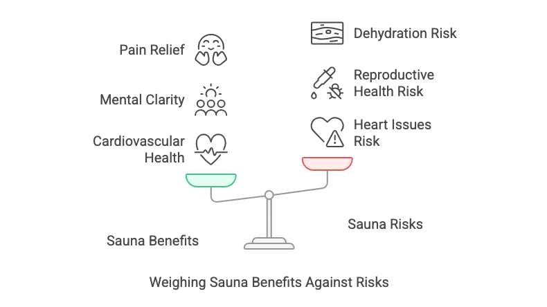 Despite its benefits, sauna use is not advisable for everyone. People with newly diagnosed heart issues, those on fresh blood pressure medication, pregnant individuals, and those dehydrated should steer clear. Young males particularly need to be cautious due to potential heat damage to testicles, affecting sperm count and overall health, which can relate to all-cause mortality, and should limit sessions to 10-15 minutes.