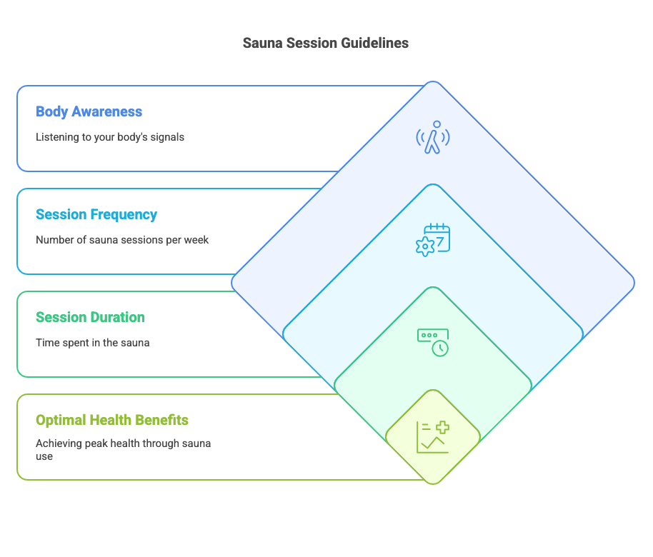 To get the best health benefits from sauna use, try to go for 2 to 3 sessions each week. The best time for each session should last around 15 to 20 minutes. You can change how often you go based on your comfort and any health issues you may have. Always check with a healthcare professional if you are not sure.