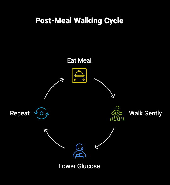 - Integrating post-meal walks into a routine is a simple, effective way to support long-term blood sugar management.