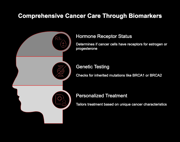 Other biomarker tests may be done too, and your doctor can talk with you about genetic testing. Genetic testing looks for changes that you might have, like BRCA1 or BRCA2. The results from these tests help your doctor find the best plan for your treatment. This way, your care is made just for you and is focused on what you need.