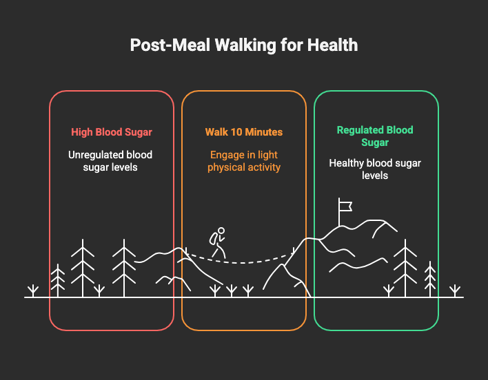 Try this: after each meal, lace up your shoes and take a brisk 10-minute walk. This simple habit can help regulate your blood sugar, boost your energy, and support your overall well-being.