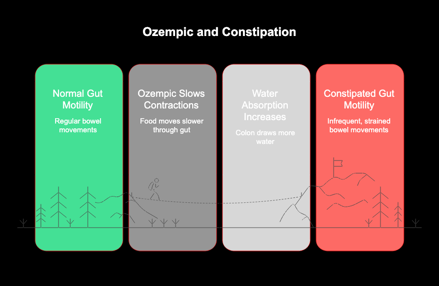 - Ozempic constipation is a common side effect because the medication slows down your digestive system.